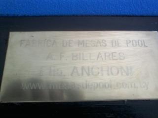 Diseño: Ingles con madera de lapacho tratado y original, de troneras de cuero, paño italiano azul, tallado a mano en chapa de aluminio , bandas americanas bulones de hierro uniones selladas .